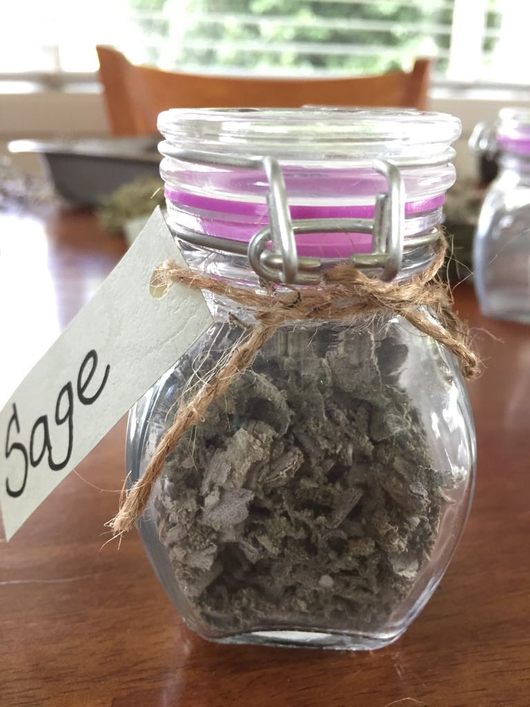 2. Label the jars so you know which herb is inside. We reused the same string and label to name each jar.