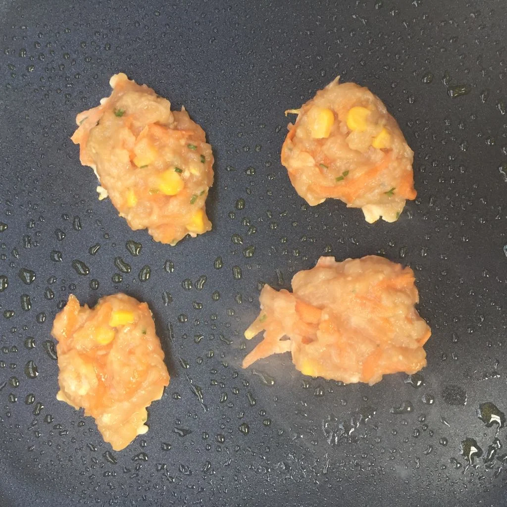 3. Place spoonfuls of the mix in the pan (the size depends of how big you want patties to be – teaspoon- size is ideal for pre-schoolers/ table-size works well for primary-aged).