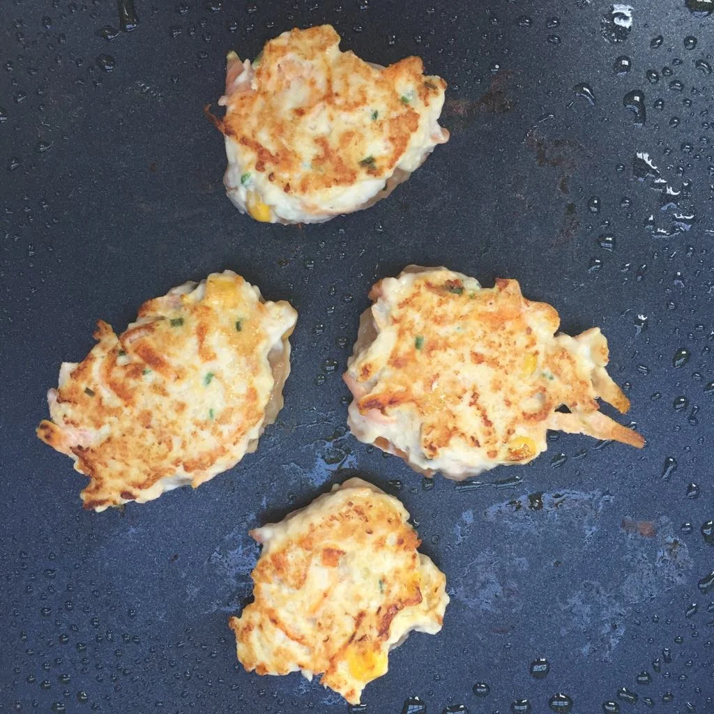 3. Place spoonfuls of mix on a tray lined with baking paper and lightly spray the tops of patties with the kitchen spray.