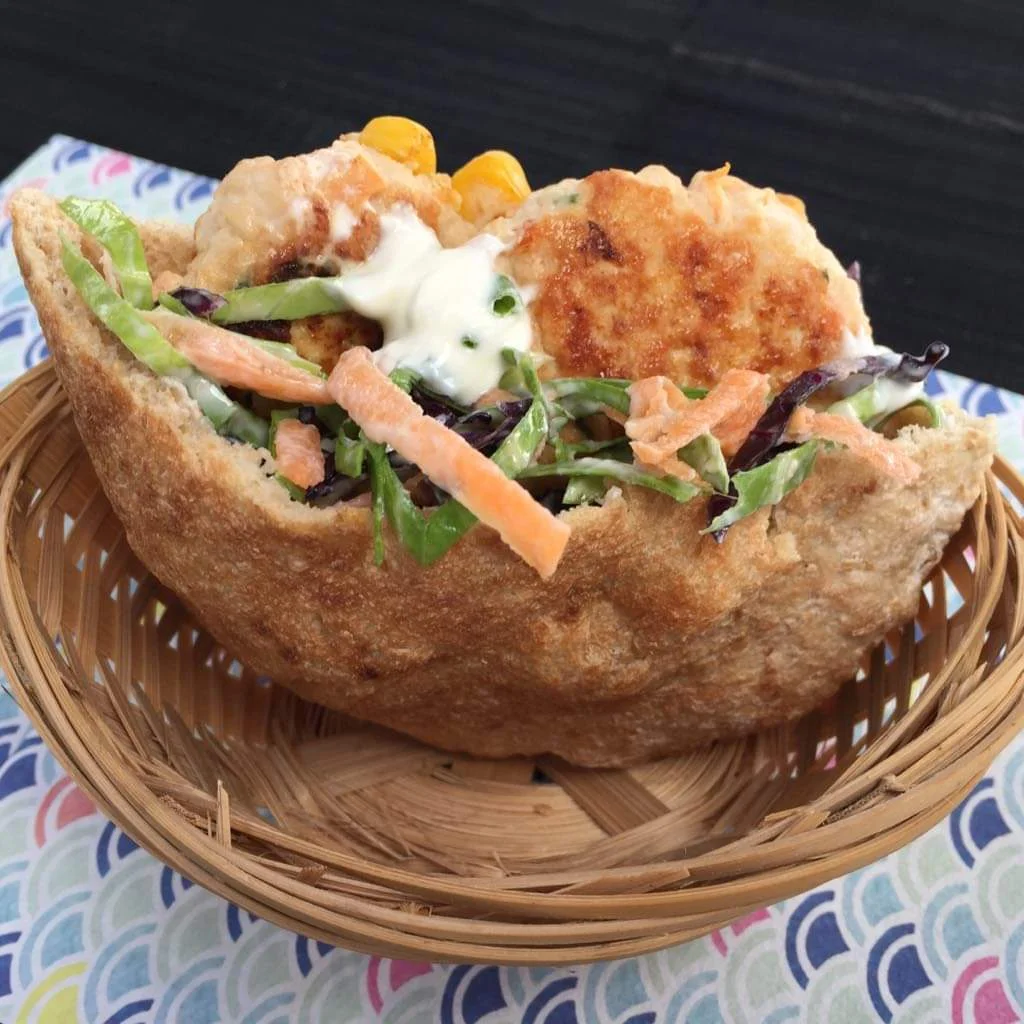 Below we give you three different suggestions on how you could serve them - on their own with dip, as a pita bread filling or in a noodle soup - but there are many other possible variations, for example, wholemeal wrap spread w/ mashed avocado and lettuce, made into mini-sliders with cucumber and a little mayo, topping rice and vege for a donburi version, and so forth.