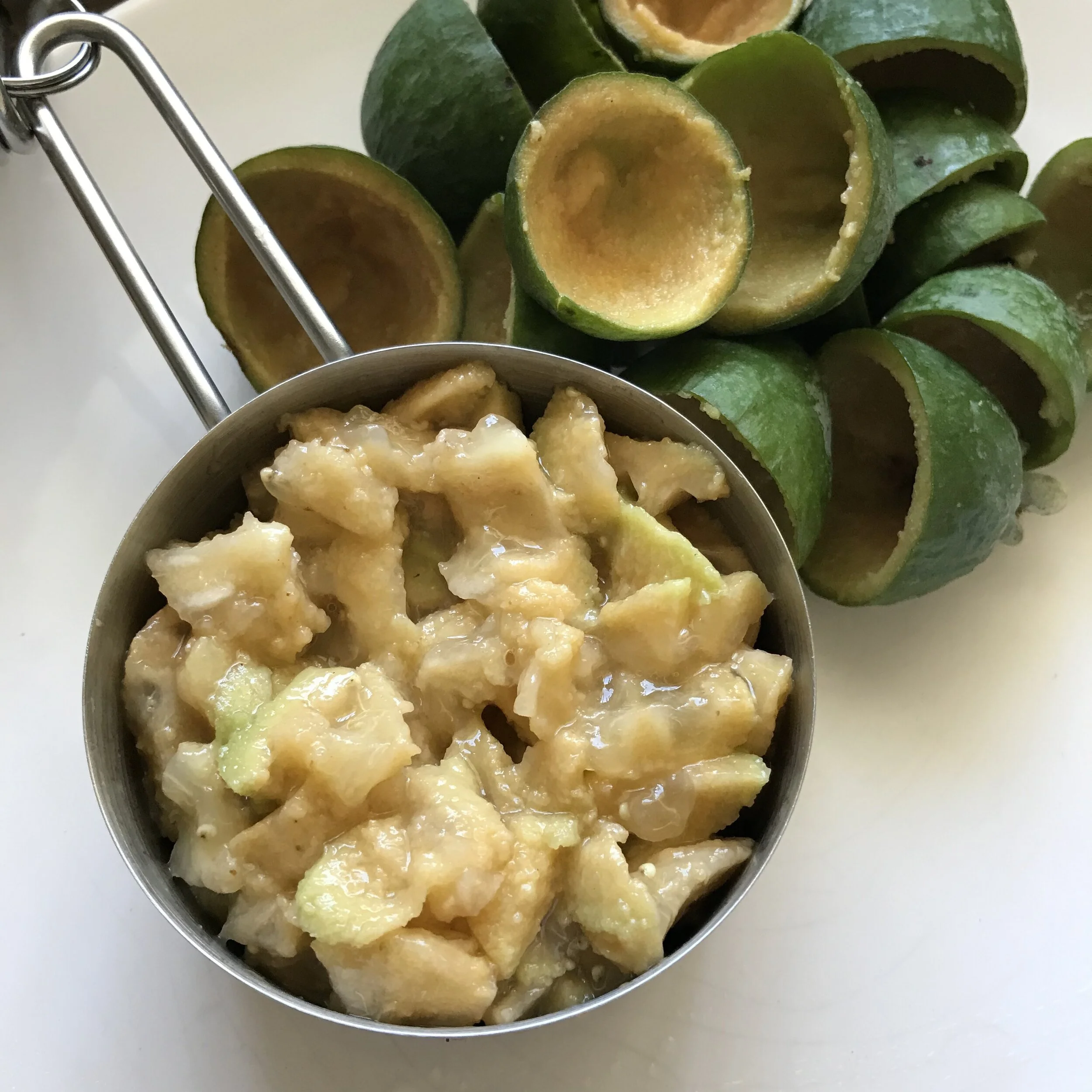 1 cup feijoa, flesh scooped out and sliced PLUS extra