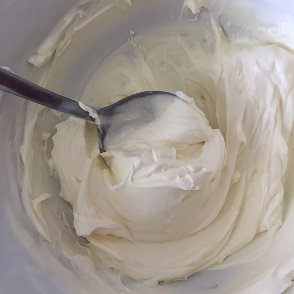2. Mix the cream cheese with the milk until it loosens up and is creamy enough to pipe or spread.