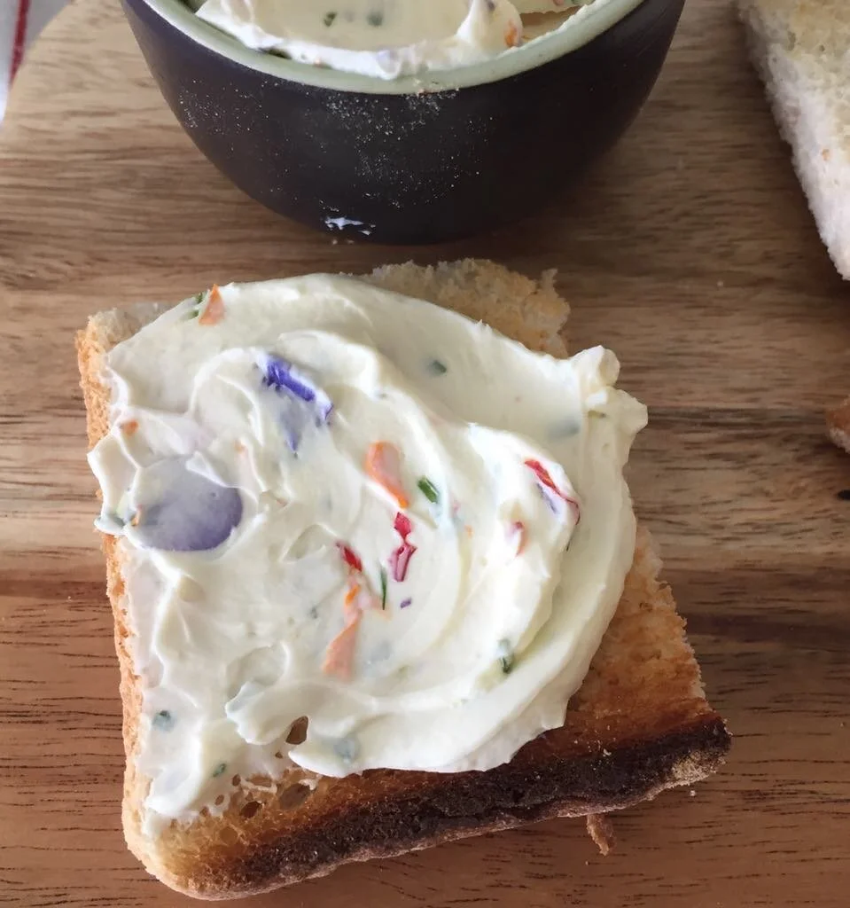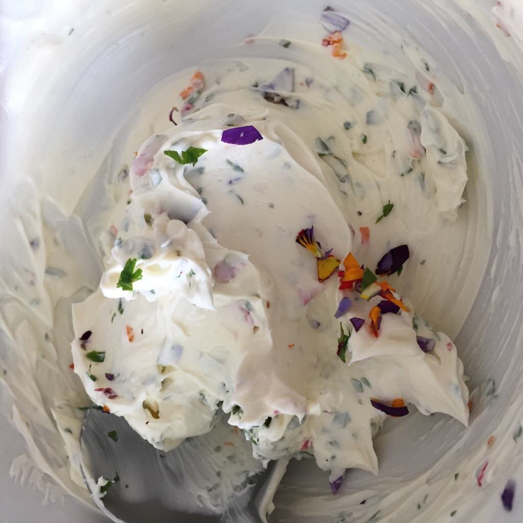 3. Add flowers and herbs to cream cheese mix and gently mix to combine.