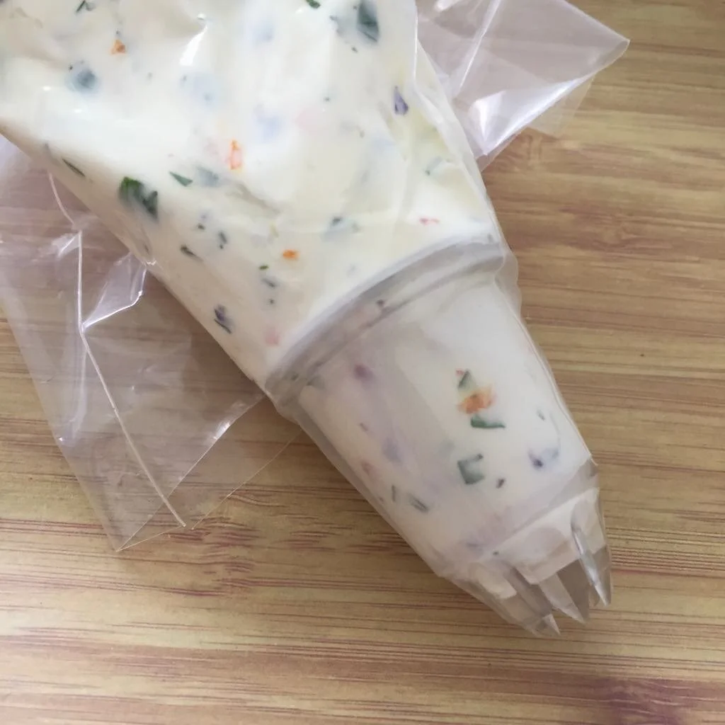 1. Place Flower Sprinkles Cream Cheese mix in a piping bag with a star nozzle.