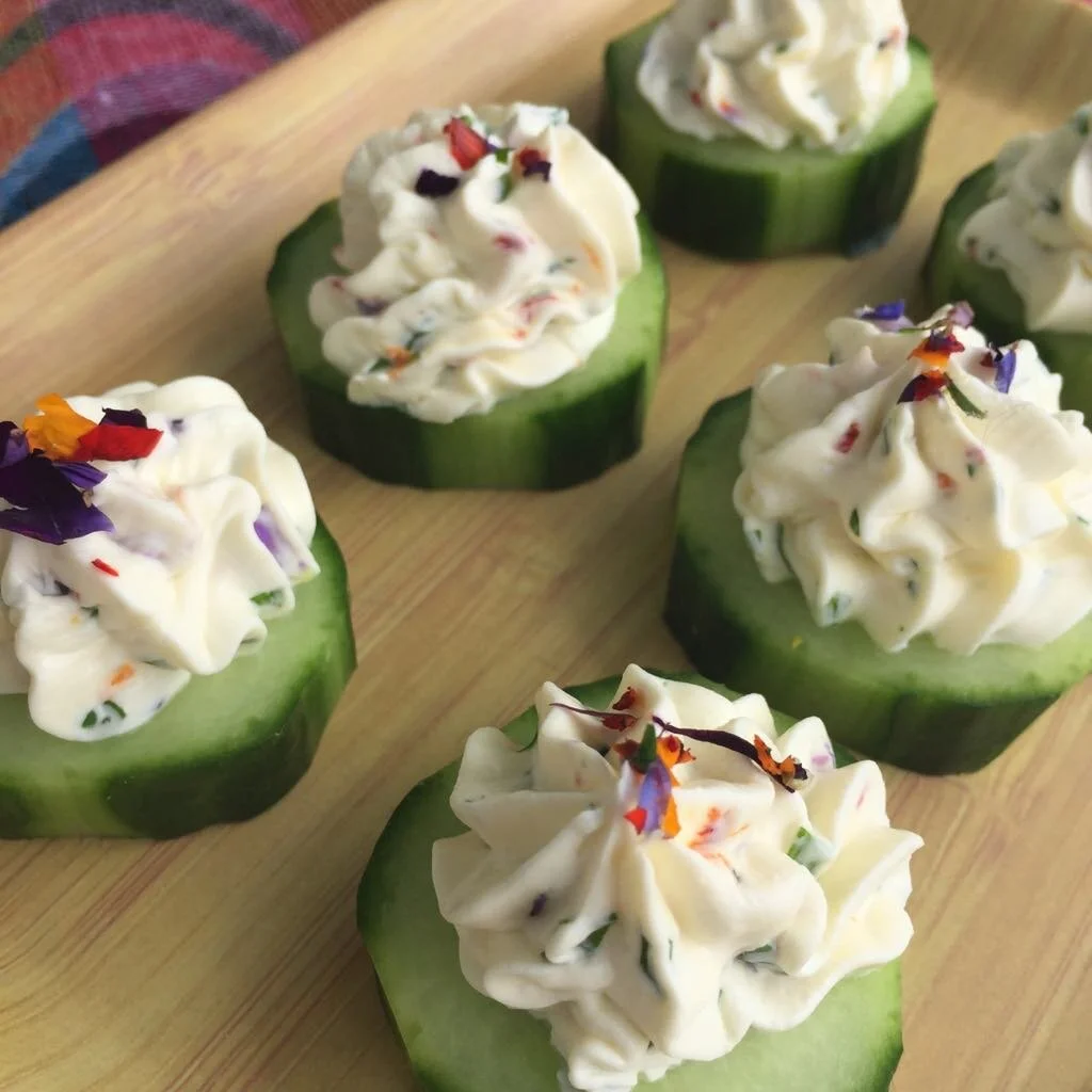 3. Pipe mix on cucumber rounds - KIDS WILL LOVE DOING THIS!