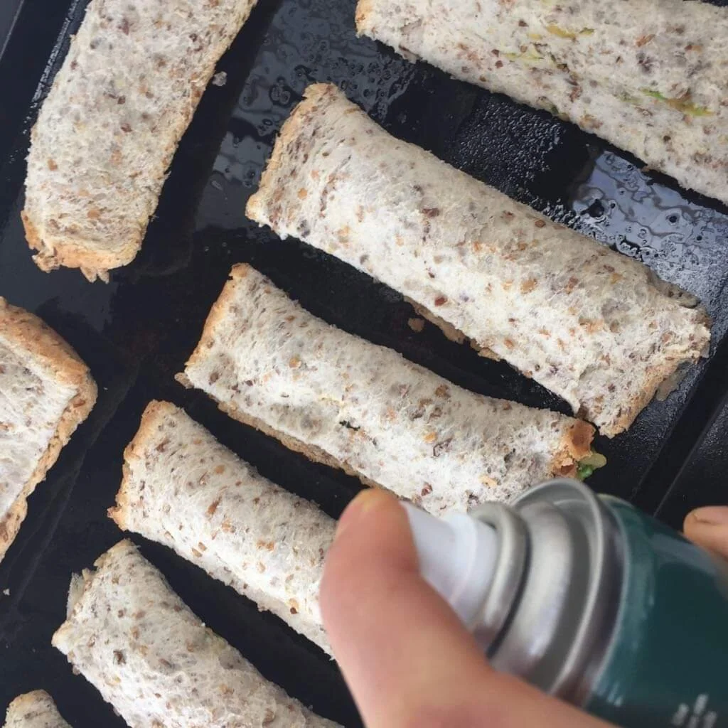 5. Place the roll-ups on a lightly sprayed oven tray.