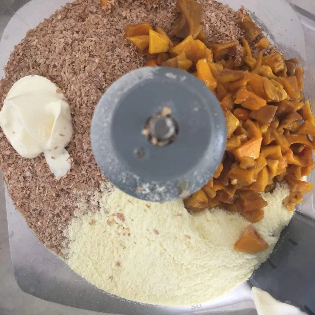 3. Turn on the machine and mix it until mixture is moist and comes together. Add more yoghurt (if too dry), or wheat bran (if too wet).