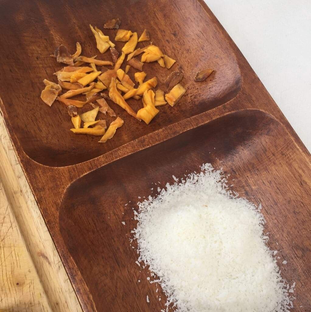 6. Decorate each with a little coconut or dried mango, or whatever you may have at hand.