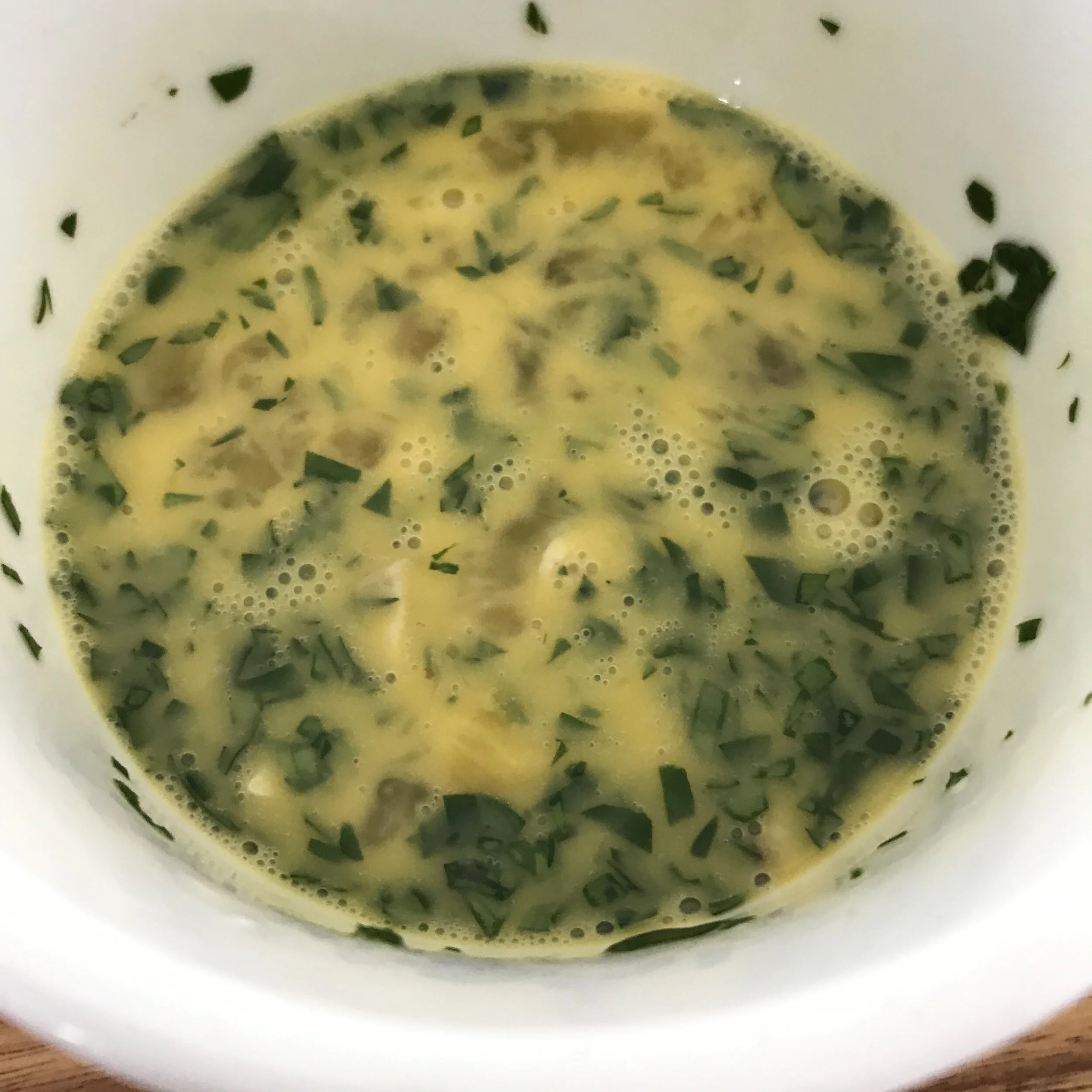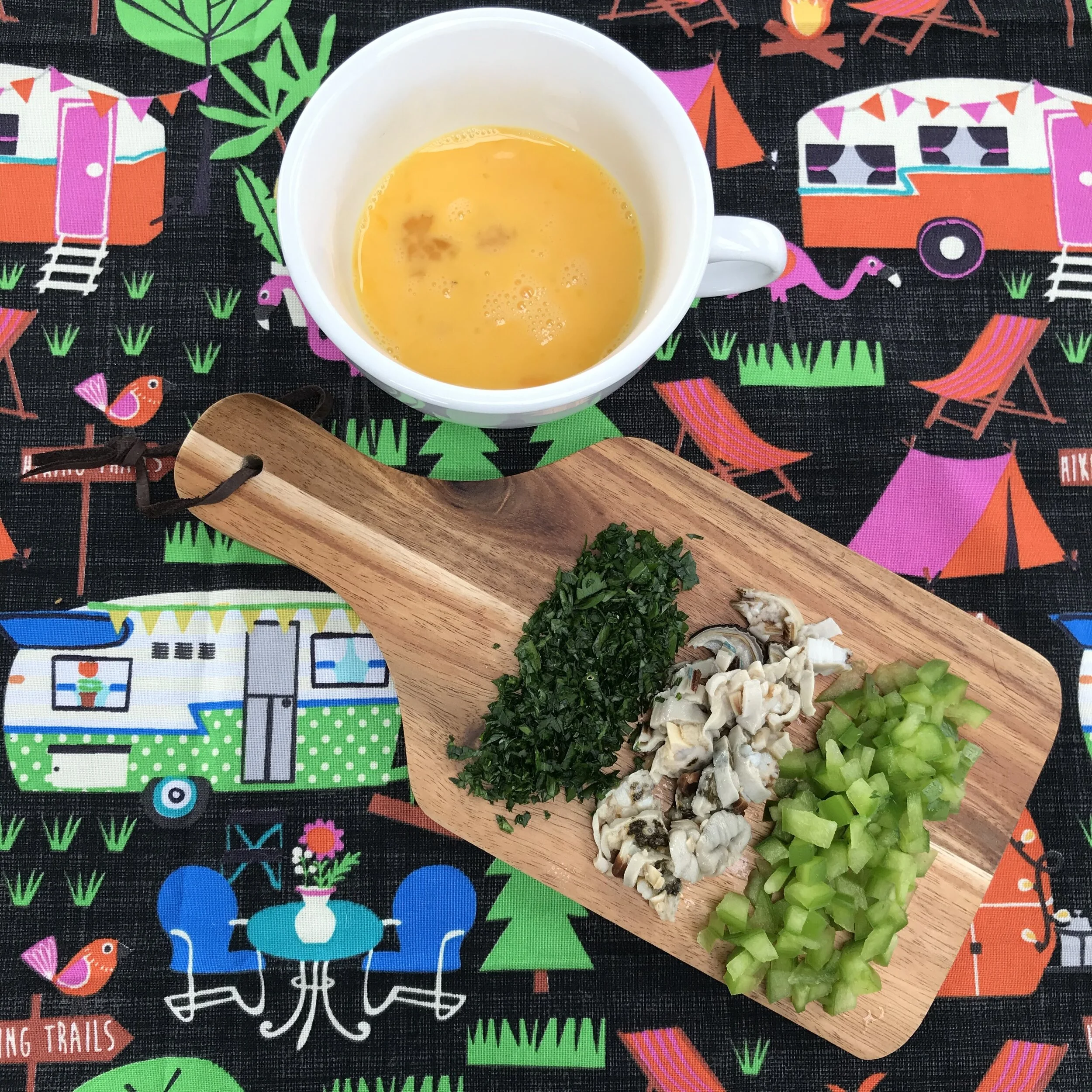 In a small bowl, mix the egg, mussels, green capsicum, parsley and season to taste. Mix to combine.