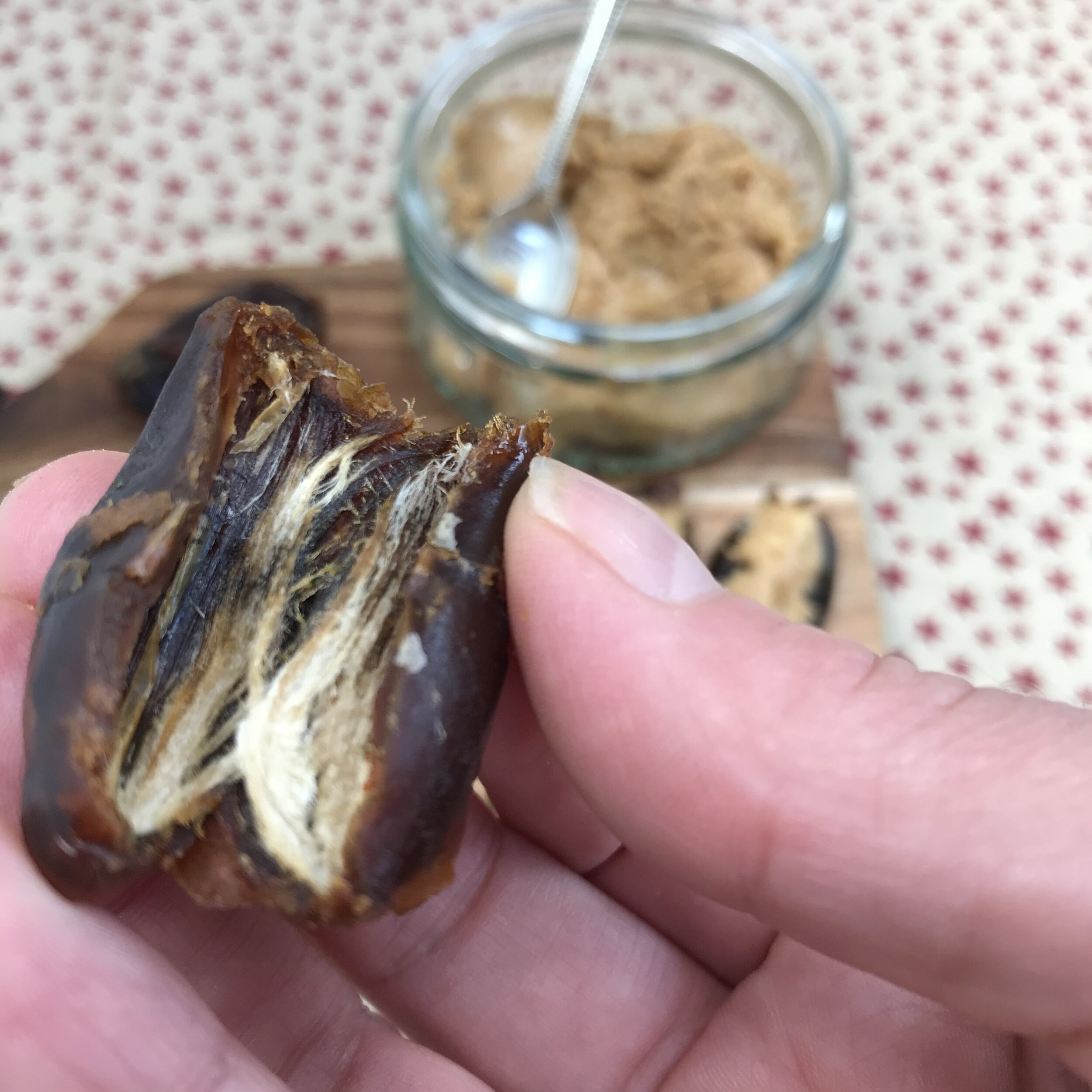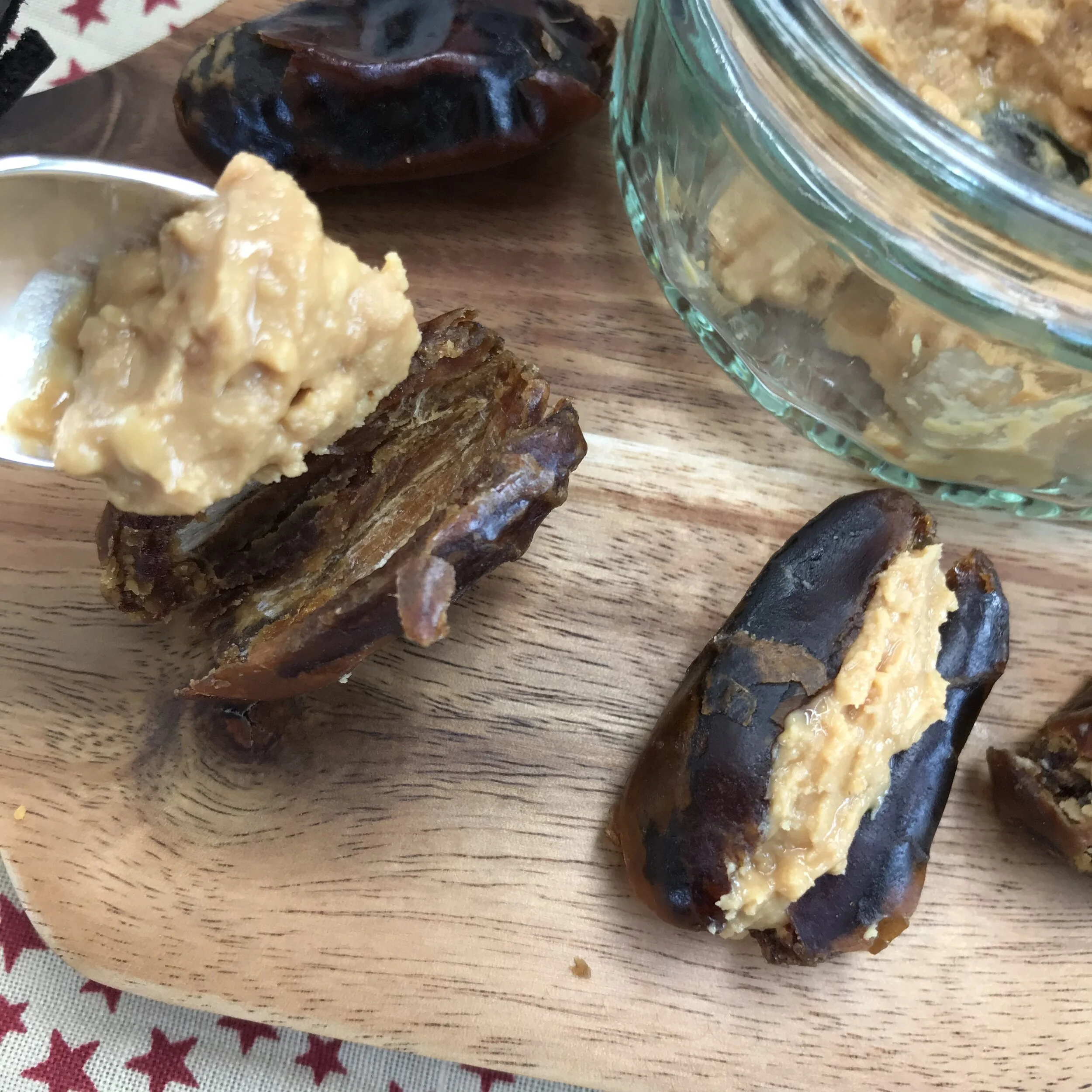 The DATE & PEANUT BUTTER BITES are just that, dates filled with good-quality, peanuts-only, peanut butter, crunchy or smooth, go for your favourite - mine is crunchy :)